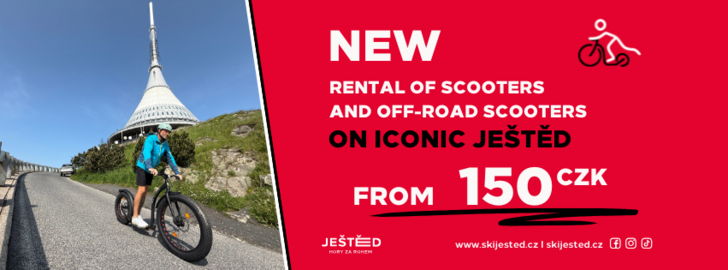Od 4.10.2025 Je půjčovna koloběžek přesunuta z vysílače Ještěd na Informační centrum Skiareálu Ještěd.