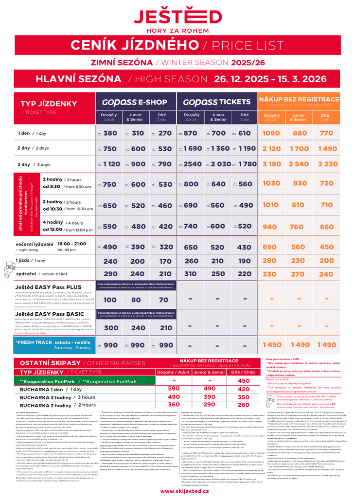 Tickets can be purchased at the Ještěd Ski Resort Info Center or at www.gopass.travel.