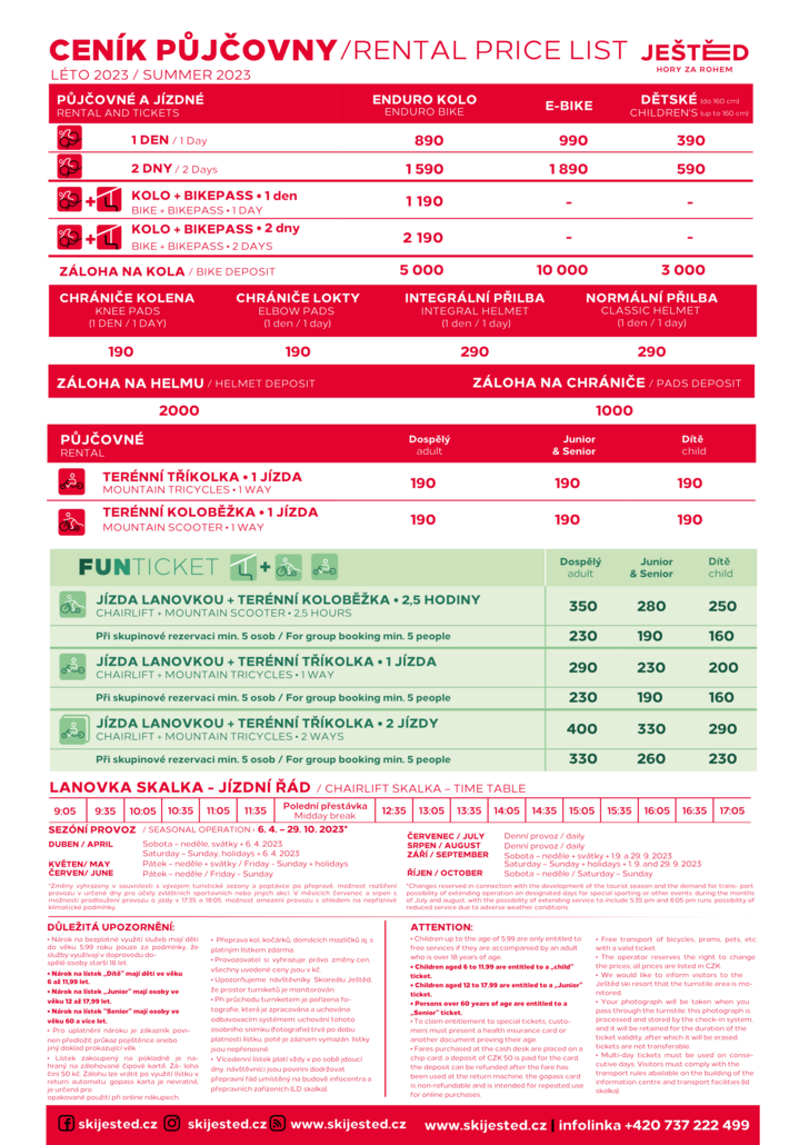 15% DISCOUNT for WALK & BIKE season tickets holders for off-road scooters and tricycles rental.15% DISCOUNT is also valid in selected JEŠTĚD GASTRONOMY and MOTION stores.