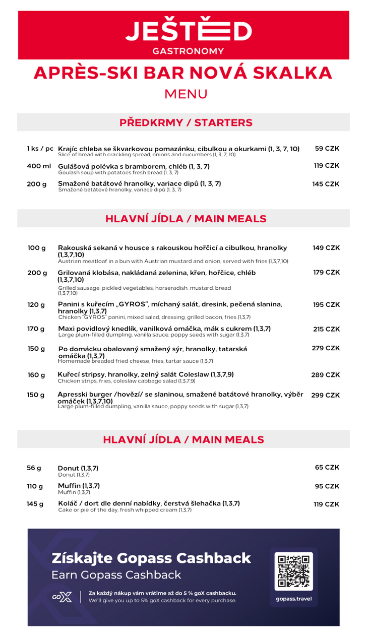 MENU APRÈS-SKI BAR NOVÁ SKALKA