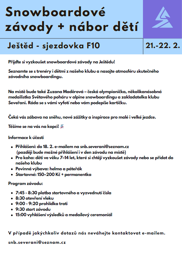 📩 Přihlášení do 18. 2. na e-mail: snb.severani@seznam.cz (později bude možné i na místě).