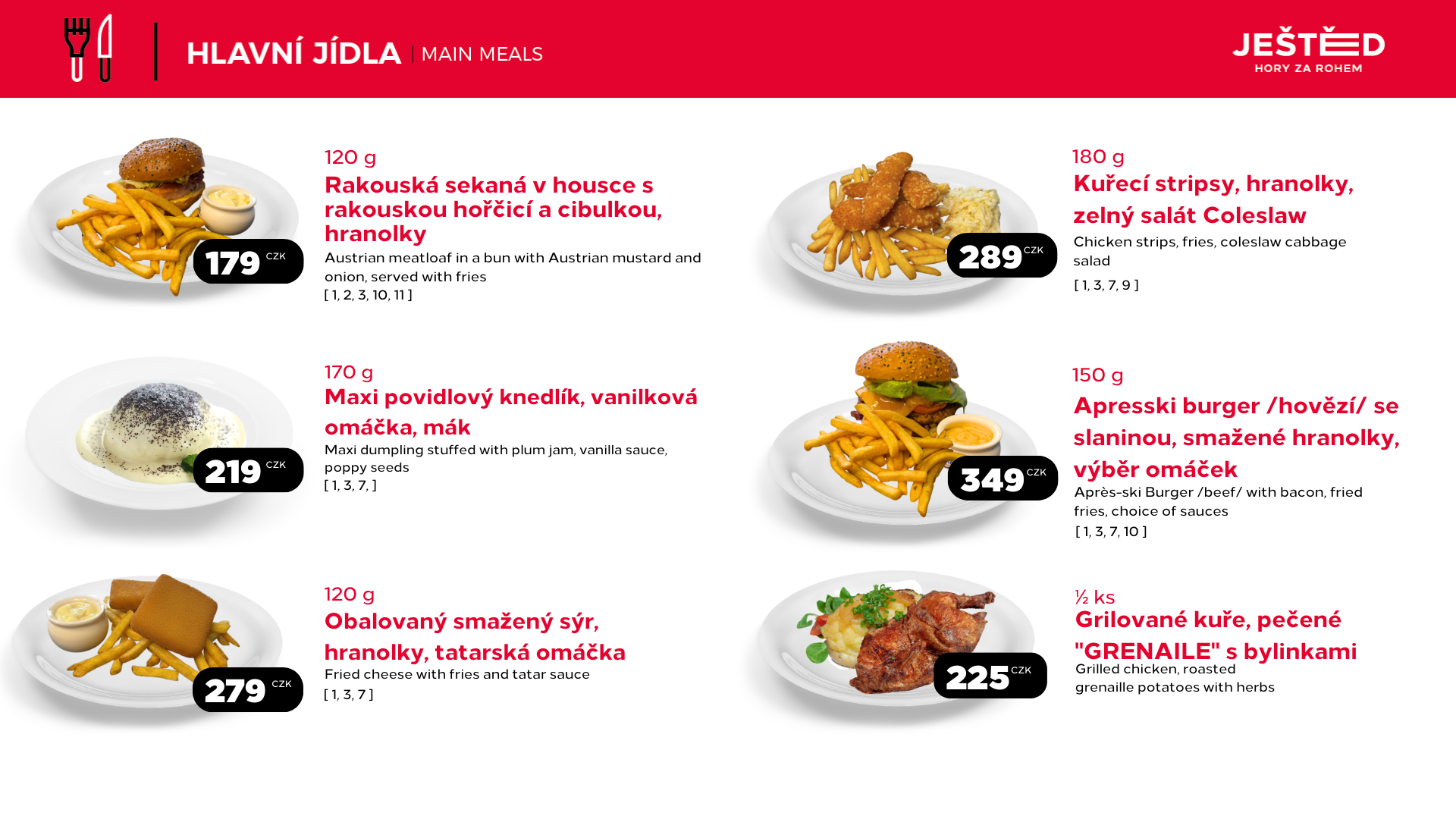 Menu Restaurace MŮSTEK