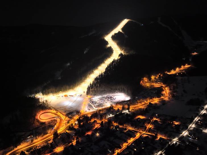 Plně osvícená, 1,5 km dlouhá a 45 m široká sjezdovka Nová Skalka