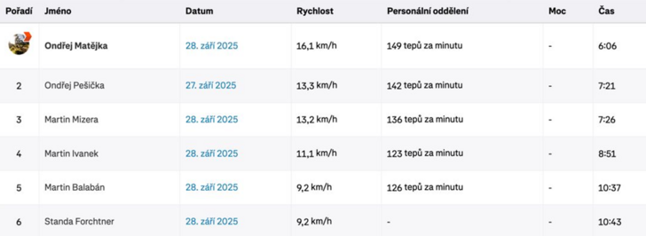 - Každý účastník může jet segment opakovaně a zlepšovat svůj čas.
